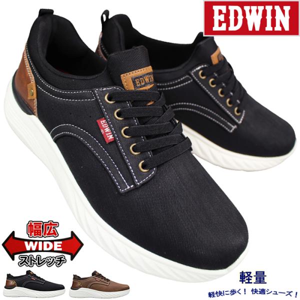 スリッポンスニーカー エドウィン EDW7647 ブラック ブラウン 25cm〜27cm メンズ スニーカー カジュアルシューズ 履きやすい靴 ゴム紐靴 軽量 ワイド4,280円 -