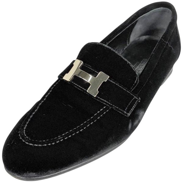 エルメス HERMES Hロゴ ローファー 靴 ローファー スエード ブラック メンズ 中古63,800円 -
