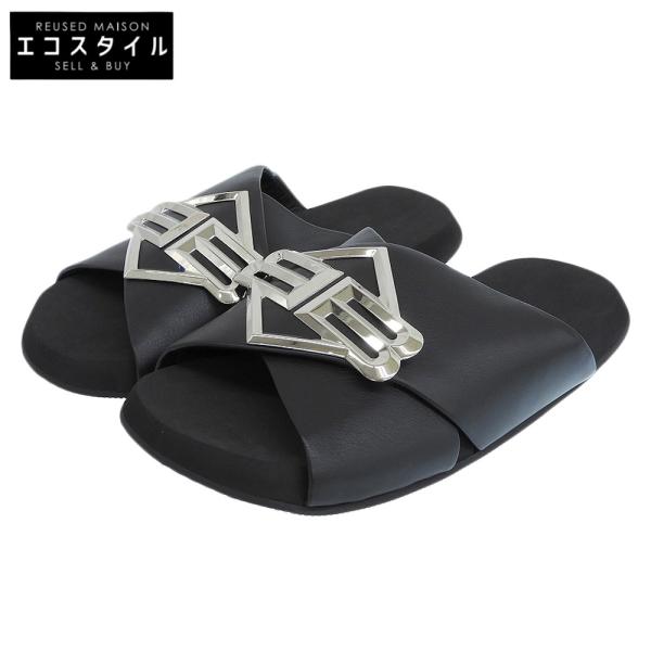 新品同様 BALENCIAGA バレンシアガ SUNSET FLAT MULE BBロゴメタルプレート レザー サンダル シューズ メンズ ブラック 43 828478 25SS66,990円 -