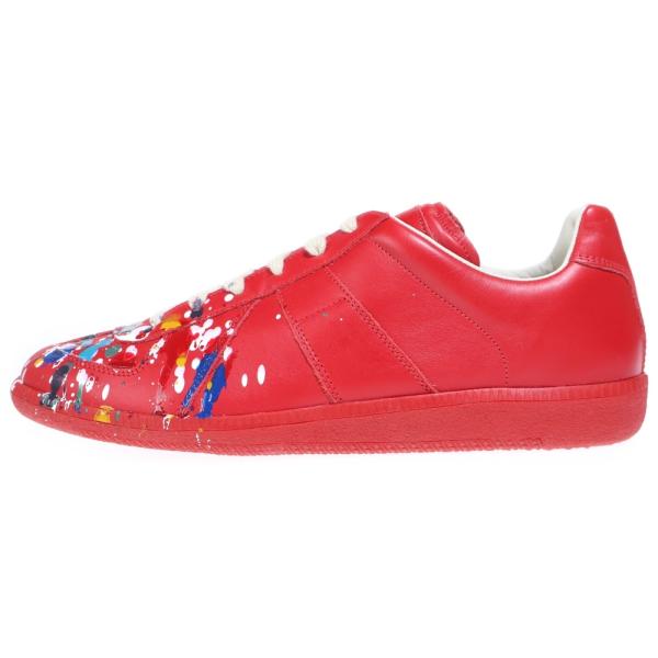 メゾンマルジェラ 70's REPLICA Sneakers レプリカ ペイント加工 ジャーマントレーナー レザーローカットスニーカー レッド53,014円 -