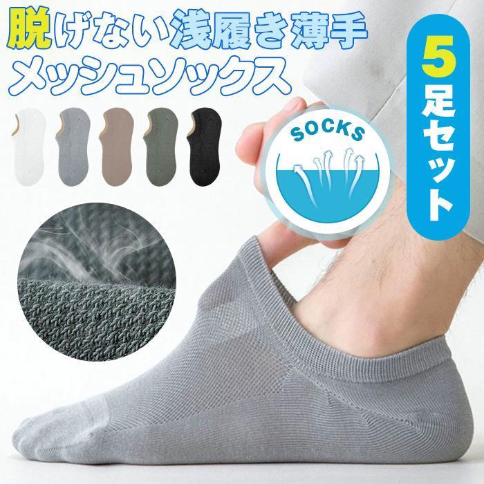 ソックス メンズ 夏 靴下 メンズ くるぶし 夏用 フットカバー 脱げない 浅履き 薄手 メッシュ カバーソックス 男性用 5足セット2,240円 -
